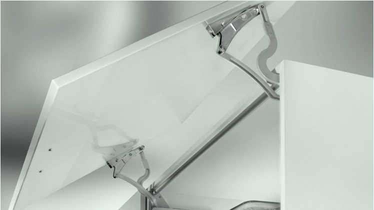 AEROLOFT nadaje drzwiom ruch liniowy, przesuwając je do góry. Jest to imponujące rozwiązanie wymagające odpowiedniej przestrzeni nad szafką. Drzwi pozostają w każdej pozycji otwarcia, a tłumione zamykanie jest ciche i kontrolowane.